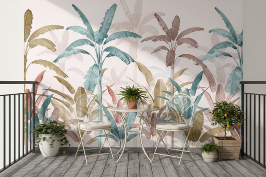 Pastel Paradise Banana Leaf Wallpaper – Soothing Tropical Foliage Mural