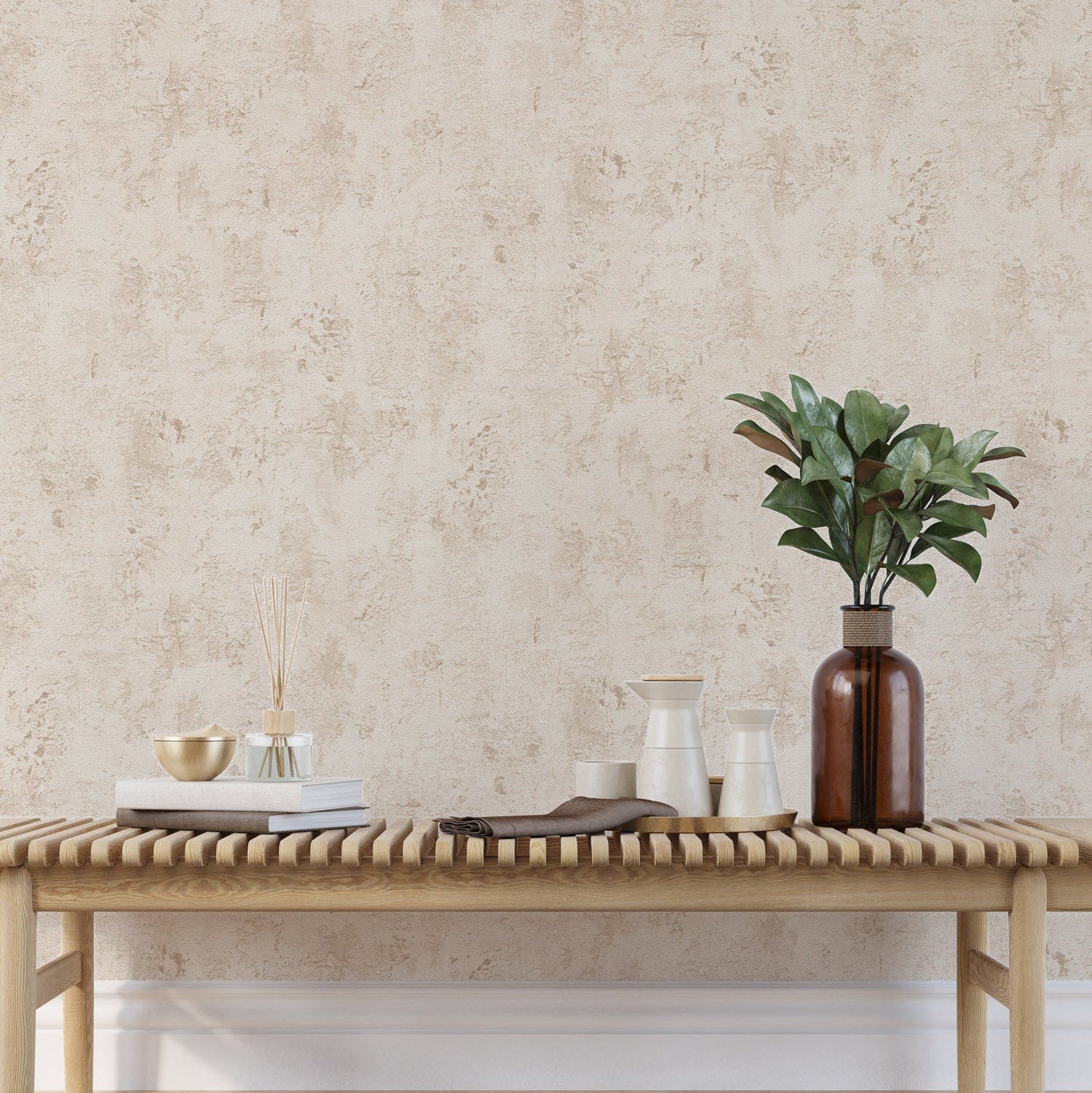 This elegant wallpaper brings a warm, textured look to any space with its soft, neutral tones. Perfect for creating a calm and inviting atmosphere, it adds timeless style and subtle sophistication to your walls. Elevate your home décor effortlessly with this beautiful, understated design.