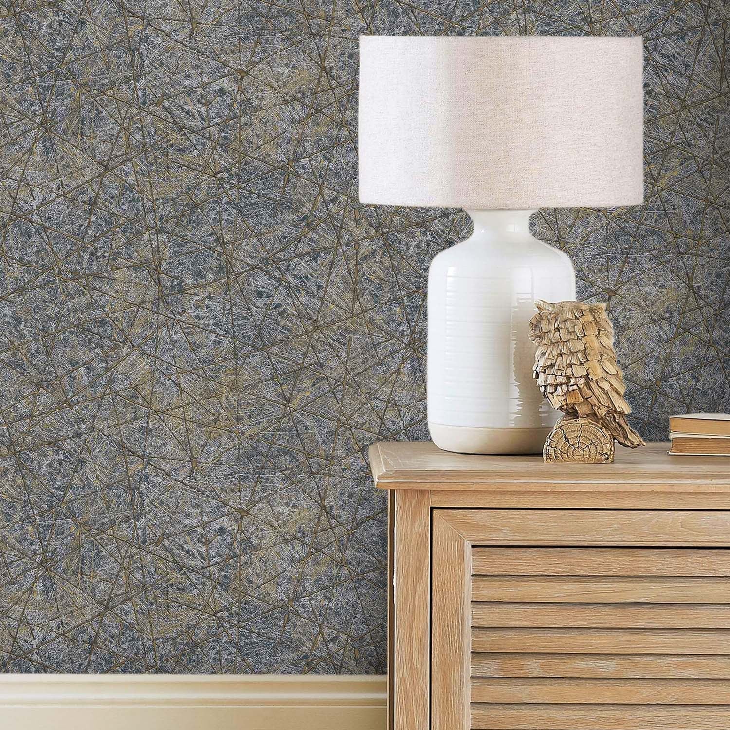 This wallpaper blends cool slate tones with an intricate web of metallic lines, creating a sophisticated, modern texture. Its abstract pattern adds depth and visual interest, making it an elegant backdrop for both contemporary and transitional décor. Perfect for adding a touch of understated luxury to any room.